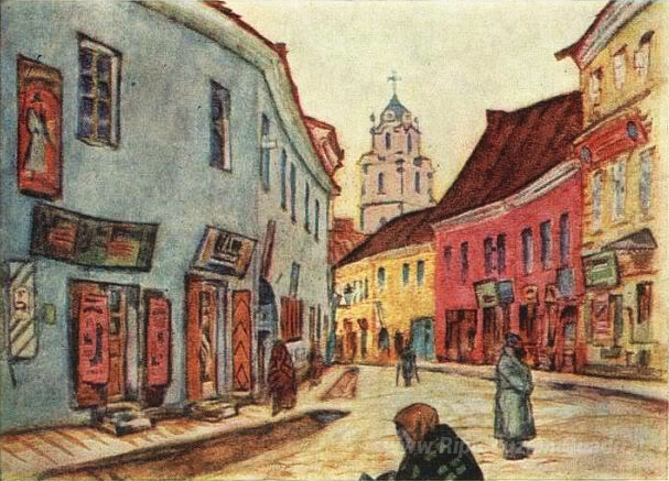 Ti offriamo una riproduzione artigianale su tela dell'opera famosa 'Street a Vilna' di Mstislav Dobuzhinsky, dal Museo delle Riproduzioni.
