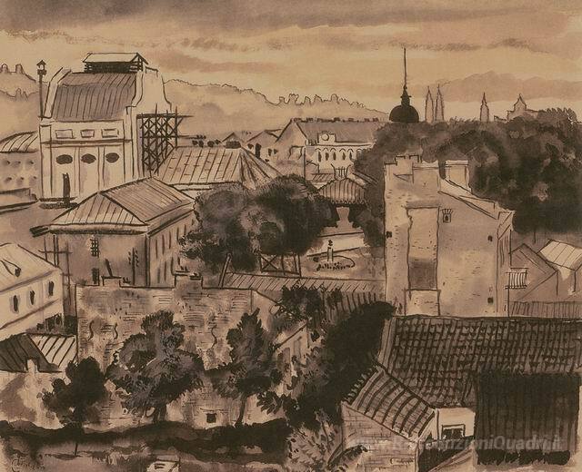 Ti offriamo una riproduzione artigianale su tela dell'opera famosa 'Teatro di Stato di Kaunas' di Mstislav Dobuzhinsky, dal Museo delle Riproduzioni.