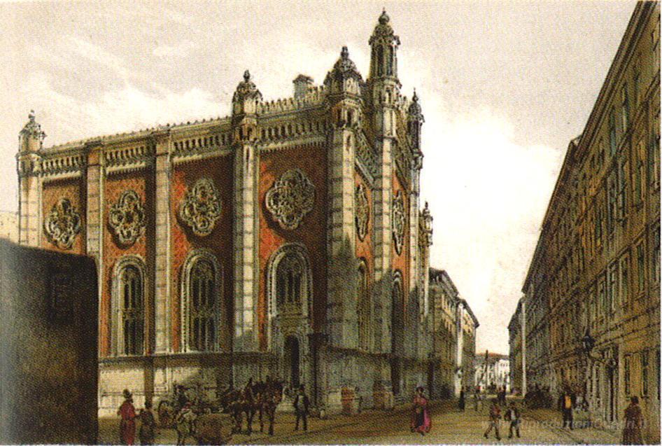 Ti offriamo una riproduzione artigianale su tela dell'opera famosa 'Tempio ebraico nella città Leopold' di Rudolf von Alt, dal Museo delle Riproduzioni.