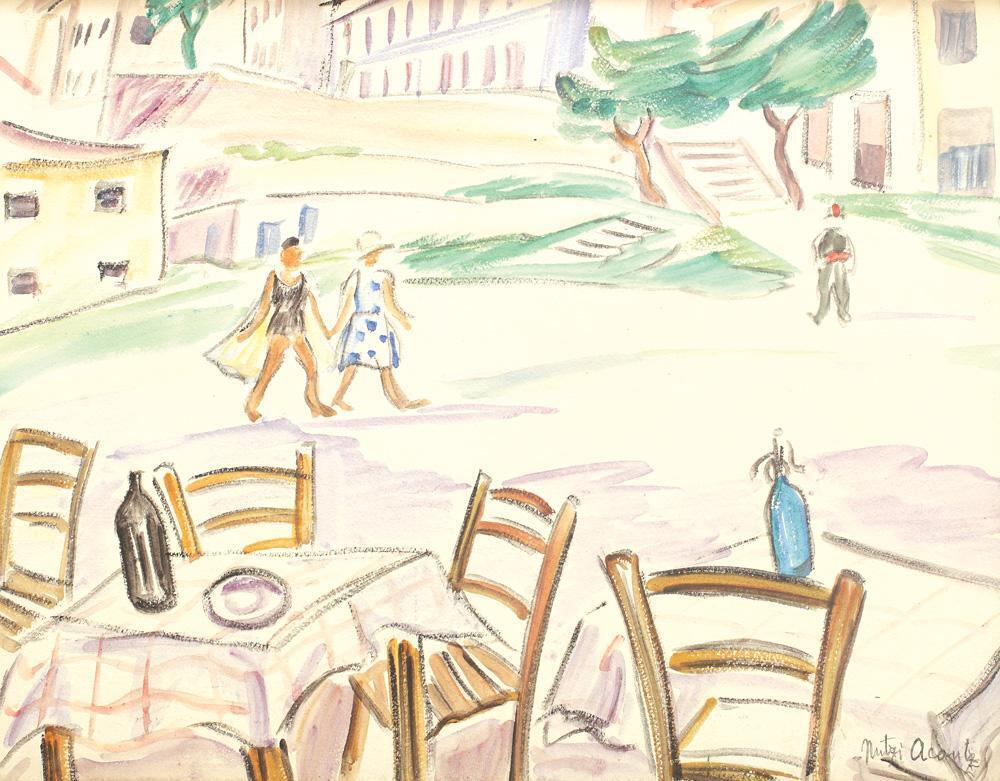 Ti offriamo una riproduzione artigianale su tela dell'opera famosa 'Terrazza in Balcic' di Nutzi Acontz, dal Museo delle Riproduzioni.