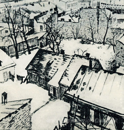 Ti offriamo una riproduzione artigianale su tela dell'opera famosa 'Tetti' di Mstislav Dobuzhinsky, dal Museo delle Riproduzioni.