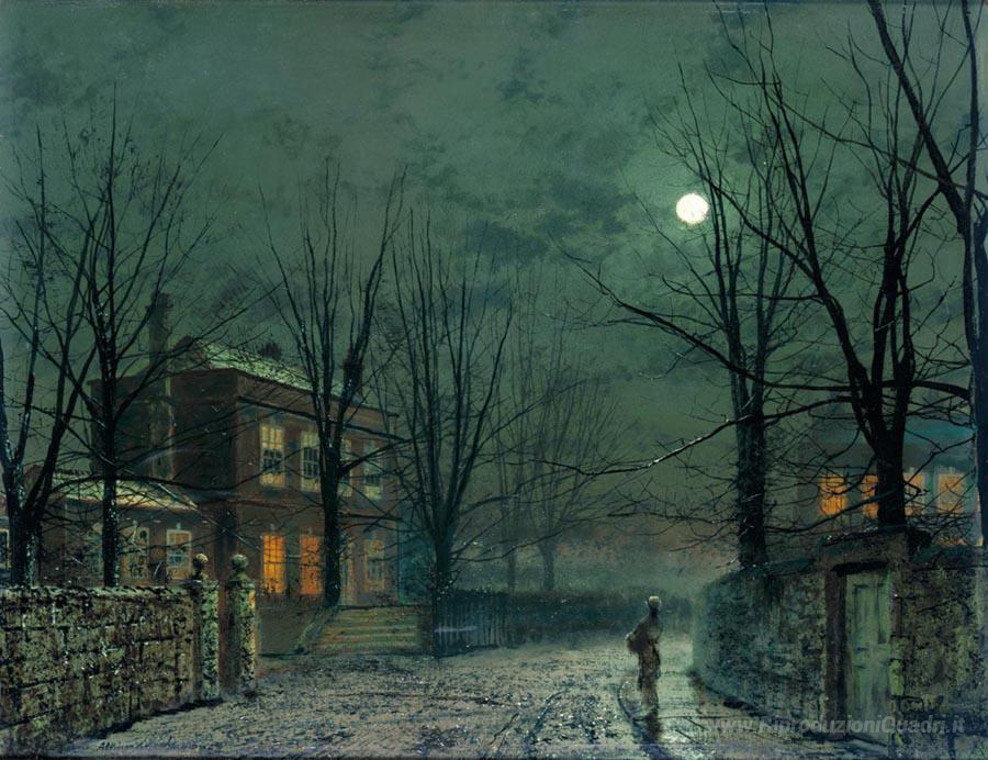 Benvenuti nella nostra selezione di esclusivi dipinti a olio italiani, dove l’arte si fonde con la tradizione e l'eleganza. Tra le opere proposte, spicca The Old Hall Under Moonlight dell’artista britannico John Atkinson Grimshaw, un maestro dell’illuminazione notturna e delle atmosfere malinconiche. Grimshaw, noto per il suo uso innovativo dei colori e della luce, cattura l’essenza dei paesaggi notturni, trasportando l’osservatore in un mondo sognante e incantevole.
