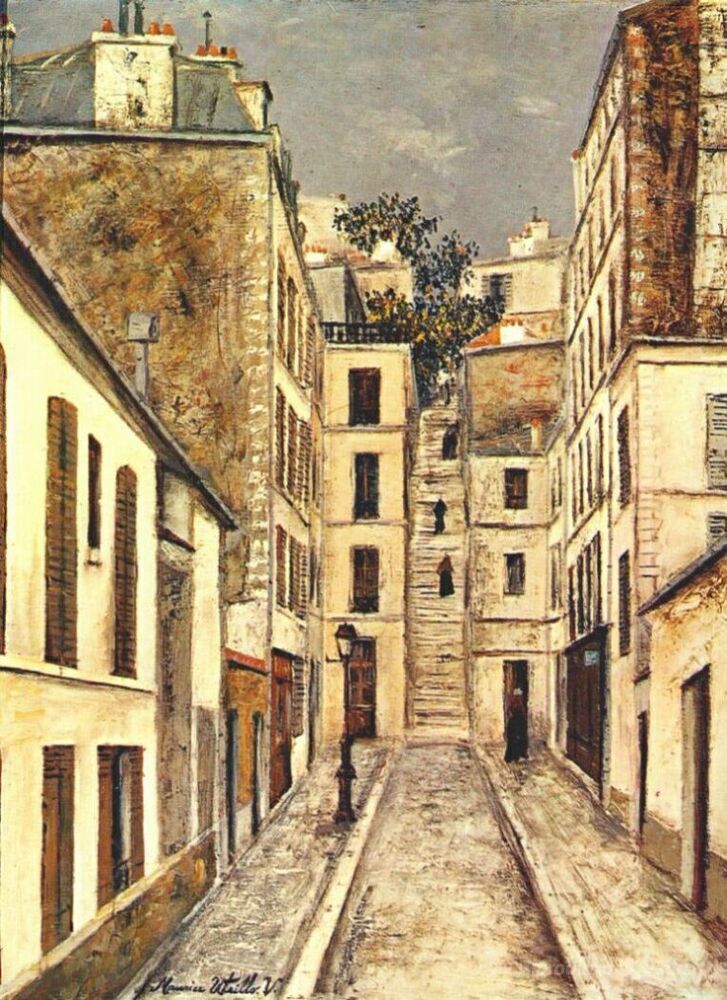 Ti offriamo una riproduzione artigianale su tela dell'opera famosa 'The Passage (il vicolo cieco)' di Maurice Utrillo, dal Museo delle Riproduzioni.