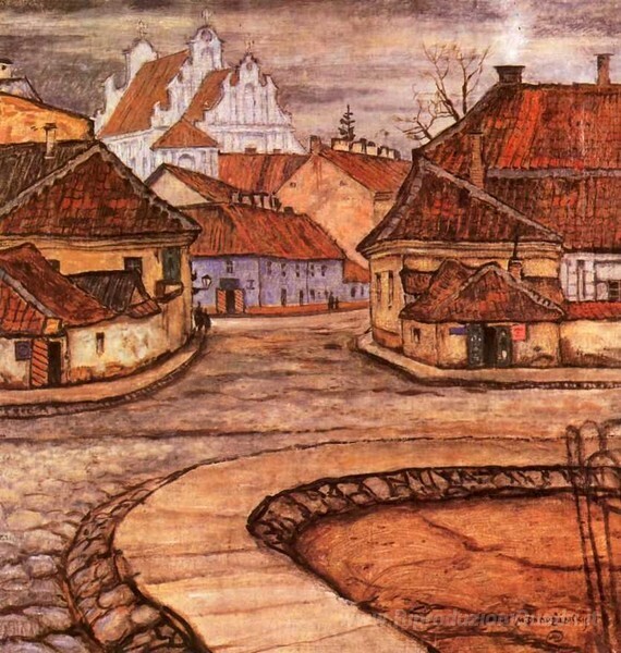 Ti offriamo una riproduzione artigianale su tela dell'opera famosa 'Tilto strada nella vecchia Vilno' di Mstislav Dobuzhinsky, dal Museo delle Riproduzioni.