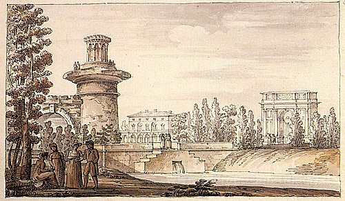 Ti offriamo una riproduzione artigianale su tela dell'opera famosa 'Torre in rovina e porta Orlovsky' di Giacomo Quarenghi, dal Museo delle Riproduzioni.
