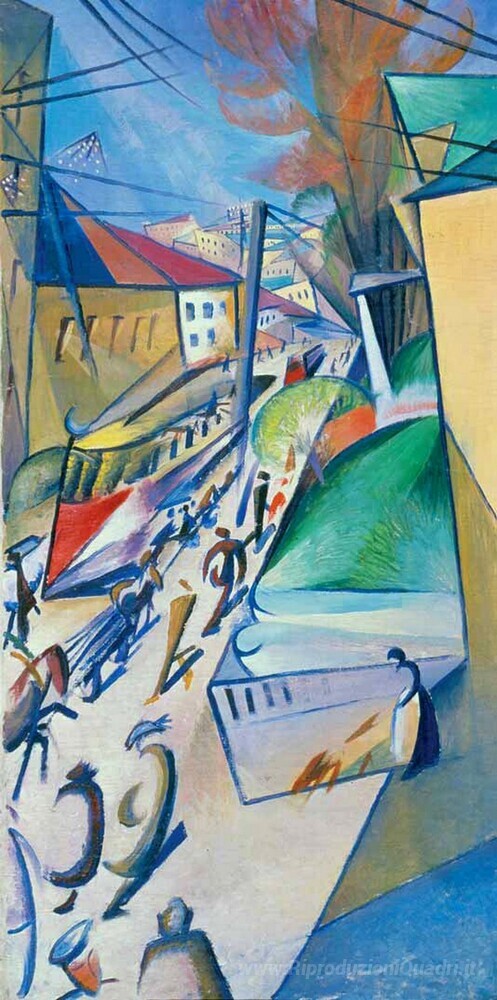 Ti offriamo una riproduzione artigianale su tela dell'opera famosa 'Tram' di Oleksandr Bogomazov, dal Museo delle Riproduzioni.