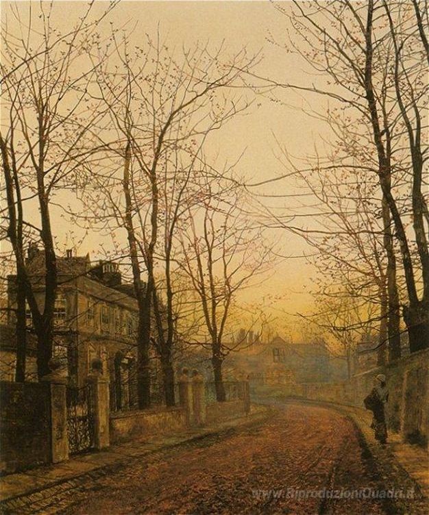 Scopri la bellezza senza tempo dei dipinti a olio italiani, dove l'arte incontra l'eleganza per trasformare ogni ambiente. Un idillio Autunno, opera sublime di John Atkinson Grimshaw, è un esempio straordinario di come la luce e il colore possano evocare emozioni profonde e trasportare lo spettatore in un'atmosfera incantevole. Grimshaw, noto per i suoi paesaggi suggestivi e le scene notturne, utilizza tecniche di chiaroscuro che conferiscono vita e profondità a ogni sua creazione.
