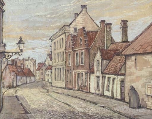 Ti offriamo una riproduzione artigianale su tela dell'opera famosa 'Una strada a Bruges' di Mstislav Dobuzhinsky, dal Museo delle Riproduzioni.