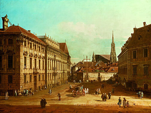 Ti offriamo una riproduzione artigianale su tela dell'opera famosa 'Una vista del Palazzo Lobkowicz a Vienna' di Bernardo Bellotto, dal Museo delle Riproduzioni.