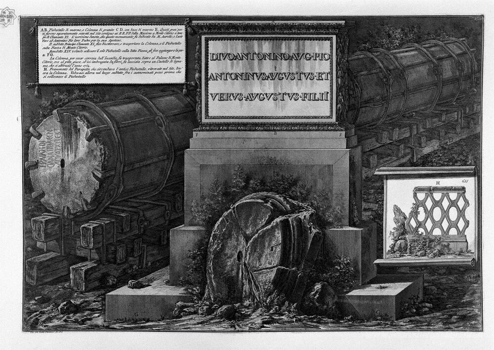 Ti offriamo una riproduzione artigianale su tela dell'opera famosa 'Un'altra considerazione di quanto precede e la colonna di piedis' di Giovanni Battista Piranesi, dal Museo delle Riproduzioni.
