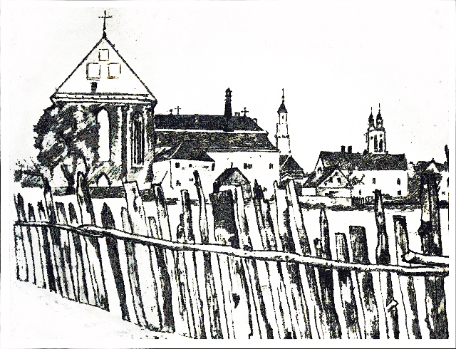 Ti offriamo una riproduzione artigianale su tela dell'opera famosa 'Vecchia città a Kaunas' di Mstislav Dobuzhinsky, dal Museo delle Riproduzioni.