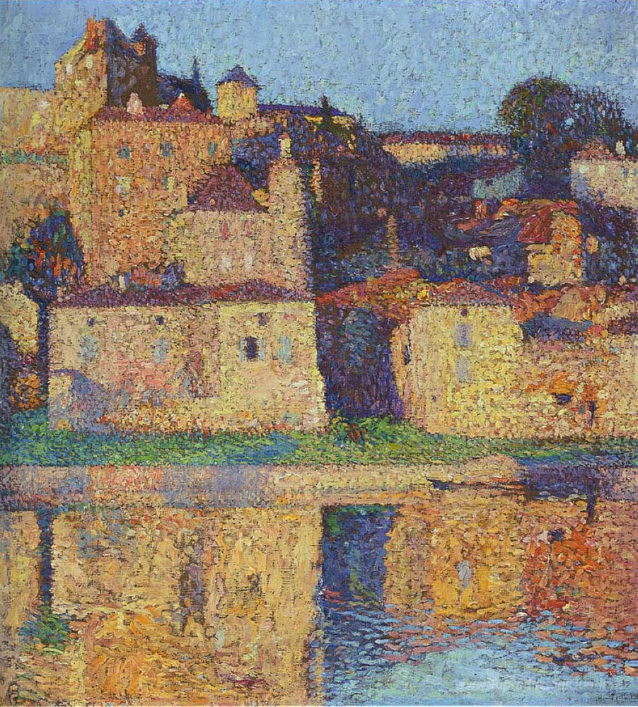 Ti offriamo una riproduzione artigianale su tela dell'opera famosa 'Veduta di Puy l'Eveque' di Henri Martin, dal Museo delle Riproduzioni.