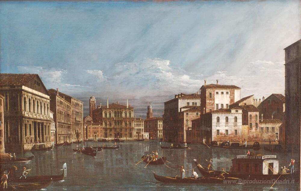 Ti offriamo una riproduzione artigianale su tela dell'opera famosa 'Veduta di Venezia' di Bernardo Bellotto, dal Museo delle Riproduzioni.