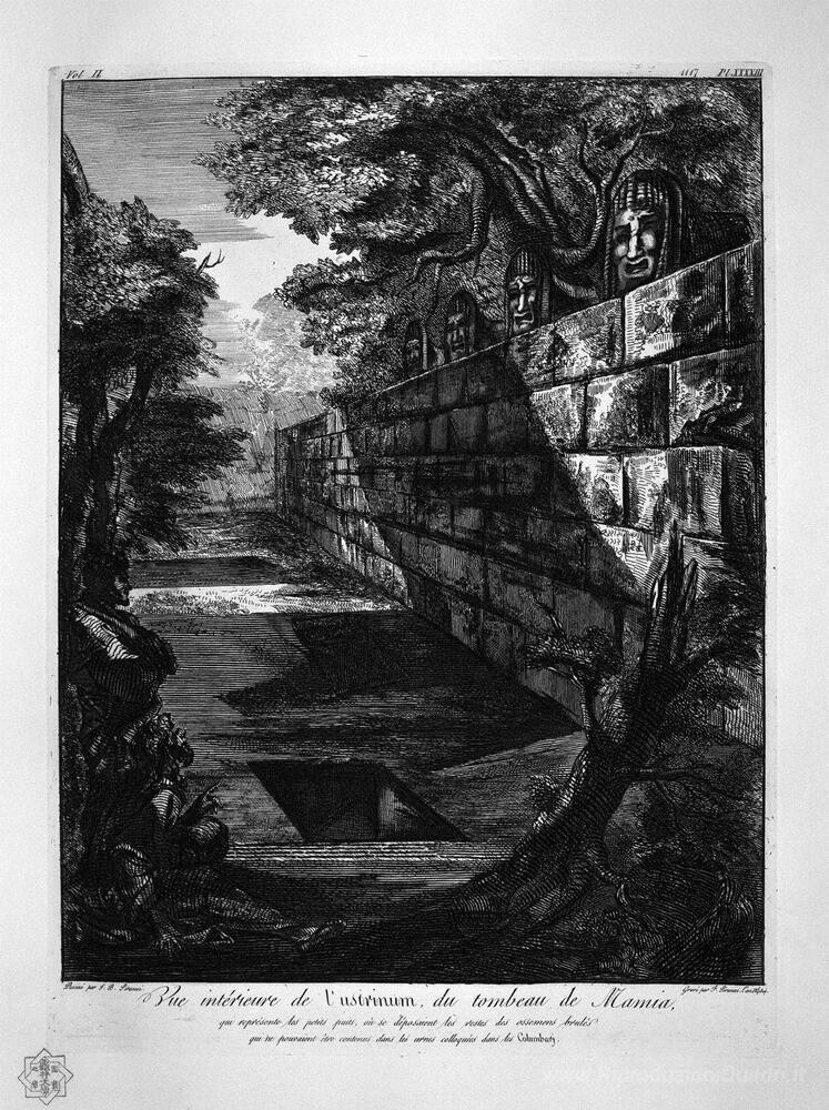 Ti offriamo una riproduzione artigianale su tela dell'opera famosa 'Veduta esterna della porta d'ingresso del suddetto tomba' di Giovanni Battista Piranesi, dal Museo delle Riproduzioni.