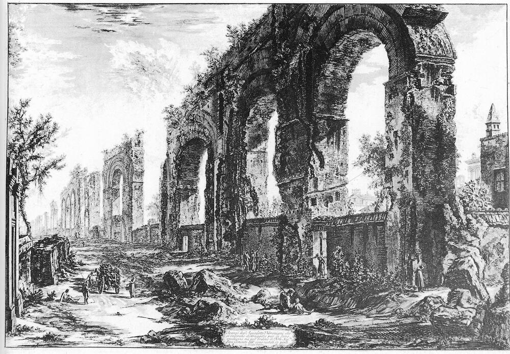 Ti offriamo una riproduzione artigianale su tela dell'opera famosa 'Vedute di Roma' di Giovanni Battista Piranesi, dal Museo delle Riproduzioni.