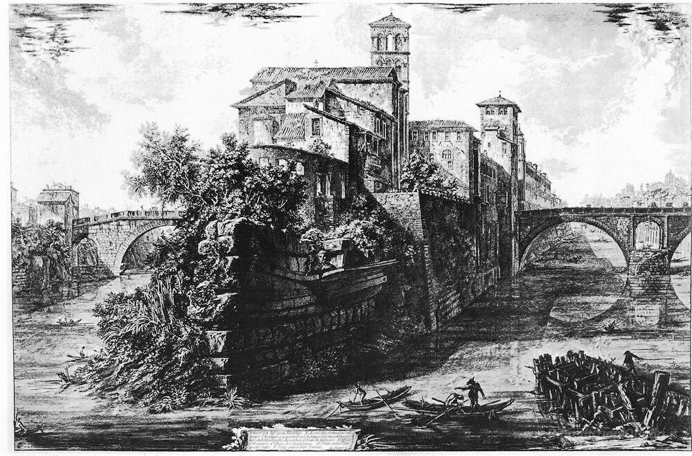 Ti offriamo una riproduzione artigianale su tela dell'opera famosa 'Vedute di Roma' di Giovanni Battista Piranesi, dal Museo delle Riproduzioni.