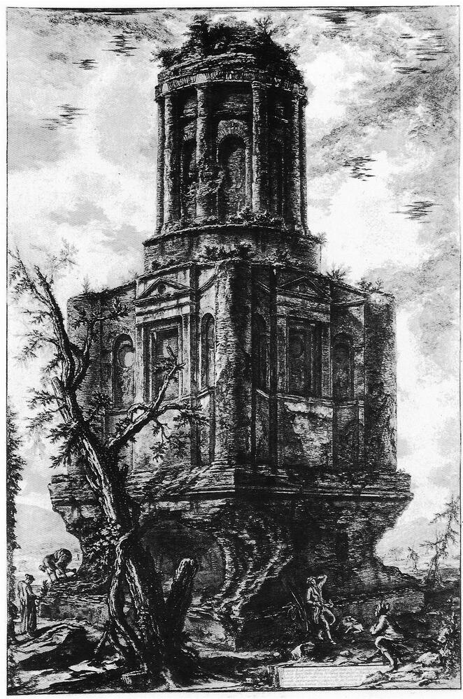 Ti offriamo una riproduzione artigianale su tela dell'opera famosa 'Vedute di Roma' di Giovanni Battista Piranesi, dal Museo delle Riproduzioni.
