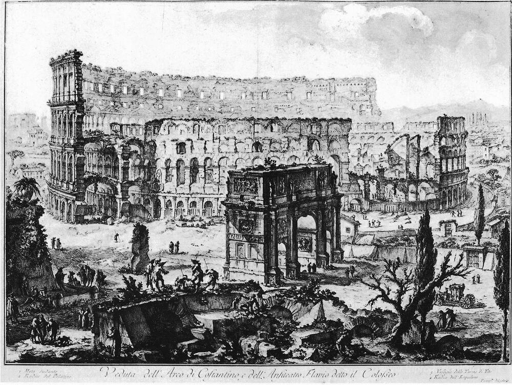 Ti offriamo una riproduzione artigianale su tela dell'opera famosa 'Vedute di Roma' di Giovanni Battista Piranesi, dal Museo delle Riproduzioni.