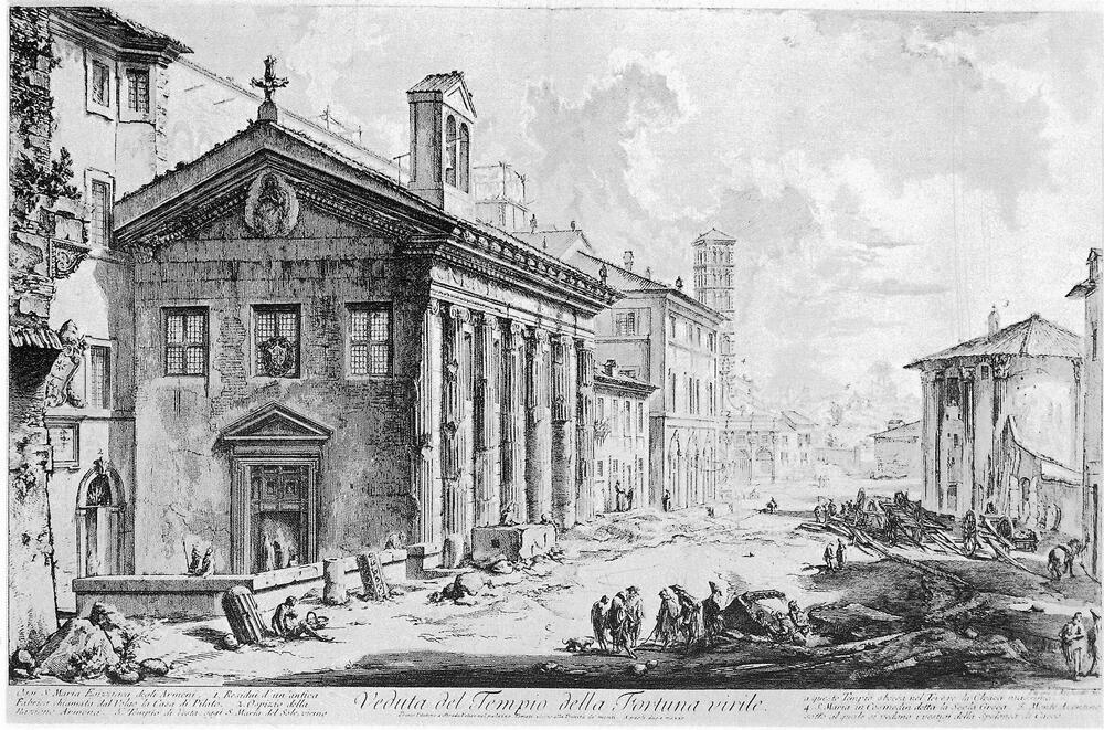 Ti offriamo una riproduzione artigianale su tela dell'opera famosa 'Vedute di Roma' di Giovanni Battista Piranesi, dal Museo delle Riproduzioni.