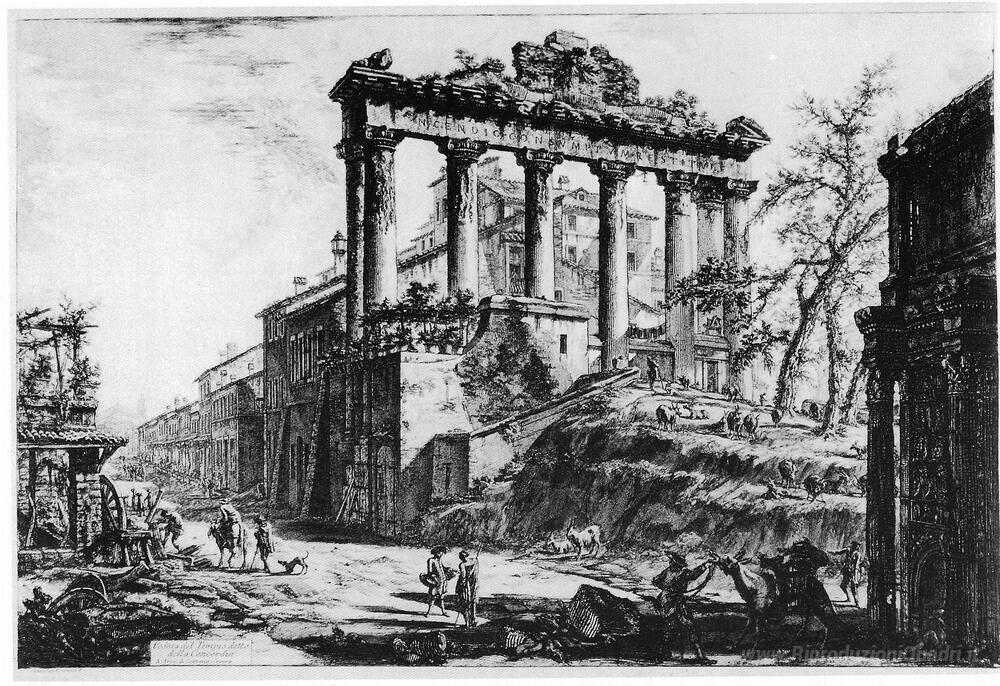 Ti offriamo una riproduzione artigianale su tela dell'opera famosa 'Vedute di Roma' di Giovanni Battista Piranesi, dal Museo delle Riproduzioni.