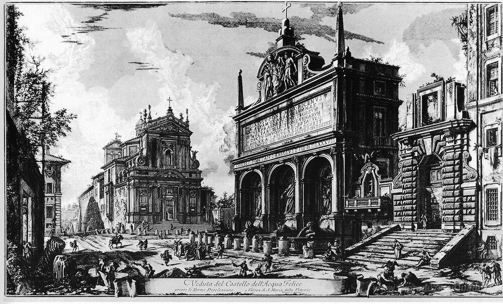 Ti offriamo una riproduzione artigianale su tela dell'opera famosa 'Vedute di Roma' di Giovanni Battista Piranesi, dal Museo delle Riproduzioni.