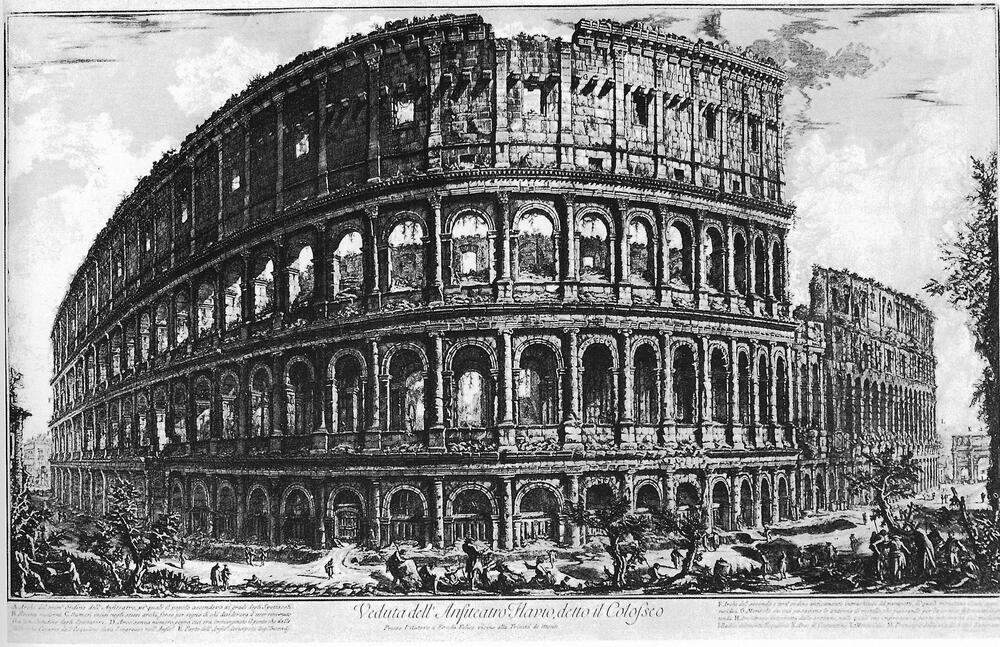 Ti offriamo una riproduzione artigianale su tela dell'opera famosa 'Vedute di Roma' di Giovanni Battista Piranesi, dal Museo delle Riproduzioni.