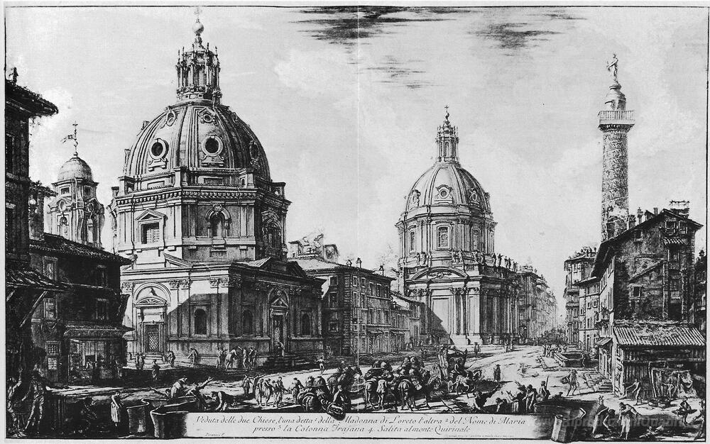 Ti offriamo una riproduzione artigianale su tela dell'opera famosa 'Vedute di Roma' di Giovanni Battista Piranesi, dal Museo delle Riproduzioni.