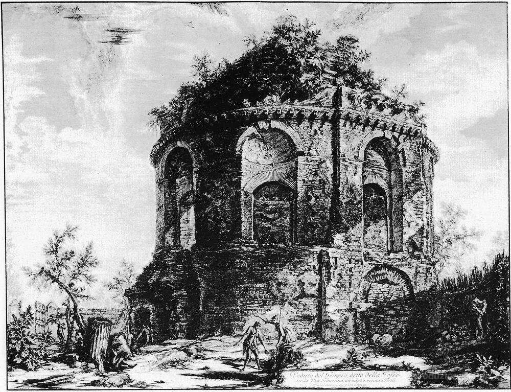 Ti offriamo una riproduzione artigianale su tela dell'opera famosa 'Vedute di Roma' di Giovanni Battista Piranesi, dal Museo delle Riproduzioni.