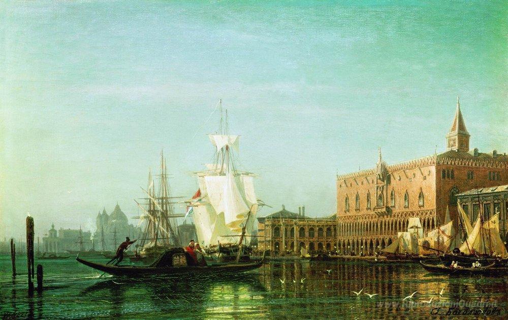 Ti offriamo una riproduzione artigianale su tela dell'opera famosa 'Venezia' di Alexey Bogolyubov, dal Museo delle Riproduzioni.