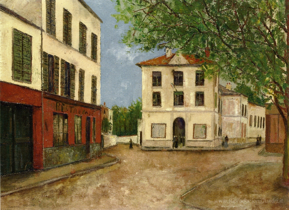 Ti offriamo una riproduzione artigianale su tela dell'opera famosa 'Via a Nanterre' di Maurice Utrillo, dal Museo delle Riproduzioni.