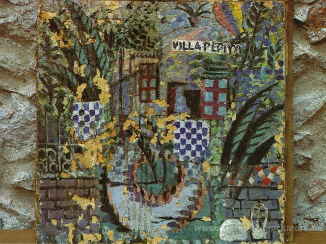 Ti offriamo una riproduzione artigianale su tela dell'opera famosa 'Villa Pepita' di Salvador Dali, dal Museo delle Riproduzioni.