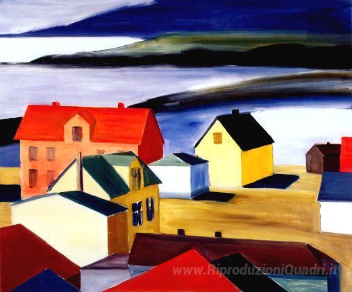 Ti offriamo una riproduzione artigianale su tela dell'opera famosa 'Village islandese' di Louisa Matthiasdottir, dal Museo delle Riproduzioni.