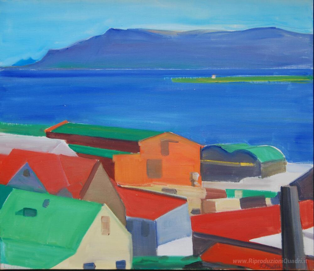 Ti offriamo una riproduzione artigianale su tela dell'opera famosa 'VILLAGE SCENE' di Louisa Matthiasdottir, dal Museo delle Riproduzioni.
