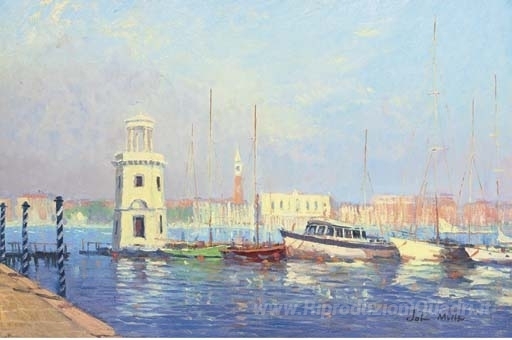 Ti offriamo una riproduzione artigianale su tela dell'opera famosa 'Vista da St. Giorgio Marina' di John Miller, dal Museo delle Riproduzioni.