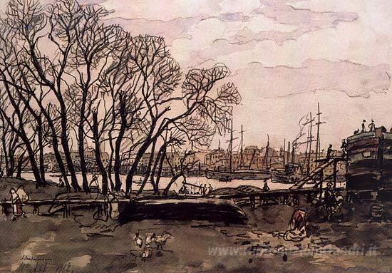 Ti offriamo una riproduzione artigianale su tela dell'opera famosa 'Vista dal parco Petrovsky' di Anna Ostroumova-Lebedeva, dal Museo delle Riproduzioni.