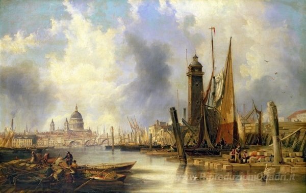 Ti offriamo una riproduzione artigianale su tela dell'opera famosa 'Vista di Londra con la St. Paul di' di John Wilson Carmichael, dal Museo delle Riproduzioni.