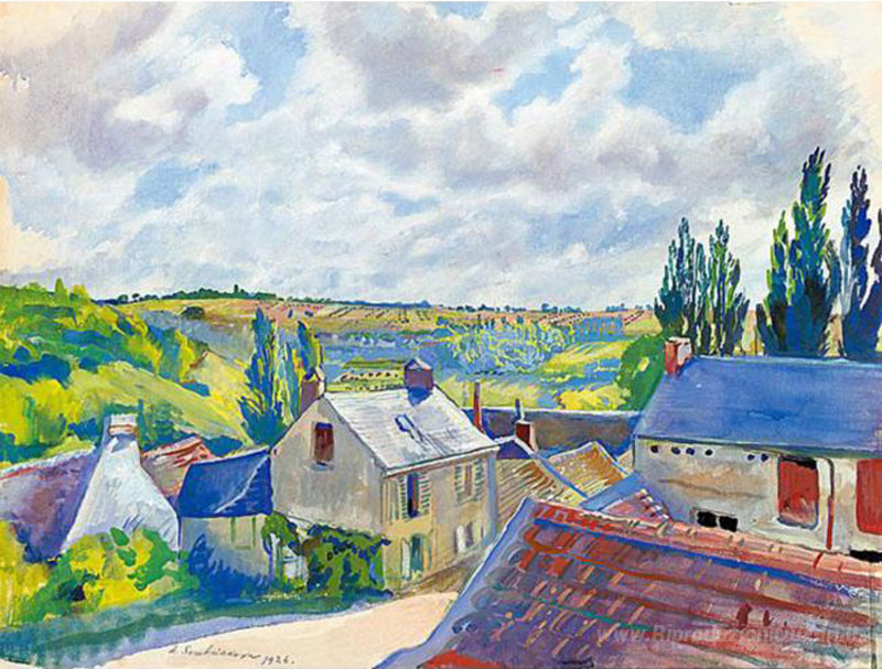 Ti offriamo una riproduzione artigianale su tela dell'opera famosa 'Vista sui tetti. Francia' di Zinaida Serebriakova, dal Museo delle Riproduzioni.