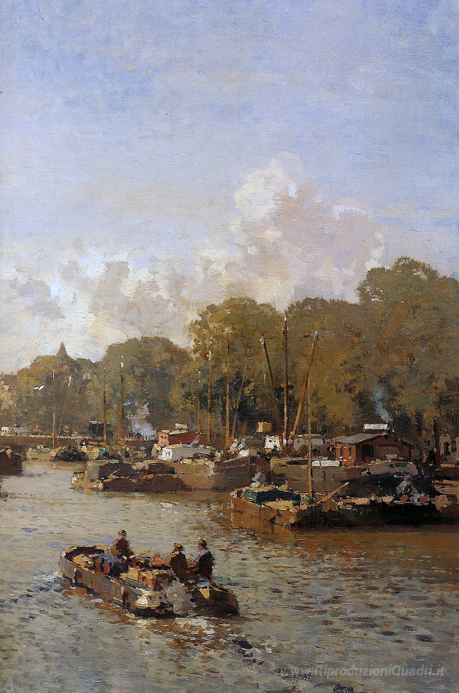 Ti offriamo una riproduzione artigianale su tela dell'opera famosa 'Vista sul Amstel' di Cornelis Vreedenburgh, dal Museo delle Riproduzioni.