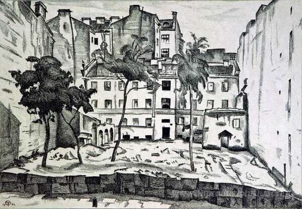 Ti offriamo una riproduzione artigianale su tela dell'opera famosa 'Wasteland sull'isola Vasilievsky' di Mstislav Dobuzhinsky, dal Museo delle Riproduzioni.