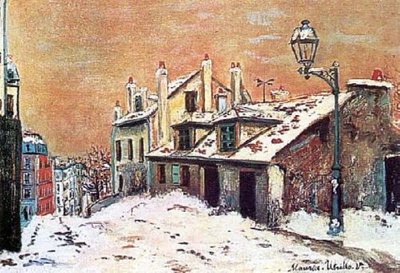 Ti offriamo una riproduzione artigianale su tela dell'opera famosa 'Winter Scene' di Maurice Utrillo, dal Museo delle Riproduzioni.