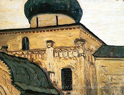 Ti offriamo una riproduzione artigianale su tela dell'opera famosa 'Yuryev-Polsky. Cattedrale di San Giorgio.' di Nicholas Roerich, dal Museo delle Riproduzioni.