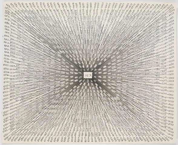 Ti offriamo una riproduzione artigianale su tela dell'opera famosa 'Raggi Infinite del Sole' di Luis Camnitzer, dal Museo delle Riproduzioni.