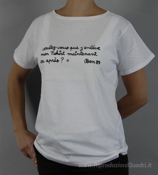 Ti offriamo una riproduzione artigianale su tela dell'opera famosa 'Voulez-vous que j'enlève maglietta mon après maintenant ou?' di Ben, dal Museo delle Riproduzioni.