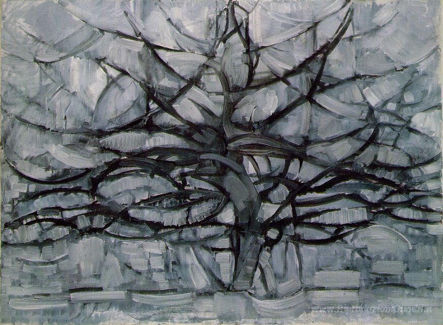 Ti offriamo una riproduzione artigianale su tela dell'opera famosa 'Il Gray Tree' di Piet Mondrian, dal Museo delle Riproduzioni.