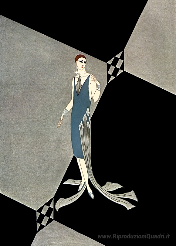 Ti offriamo una riproduzione artigianale su tela dell'opera famosa 'Abito da sera per Manhattan Mary' di Erte, dal Museo delle Riproduzioni.