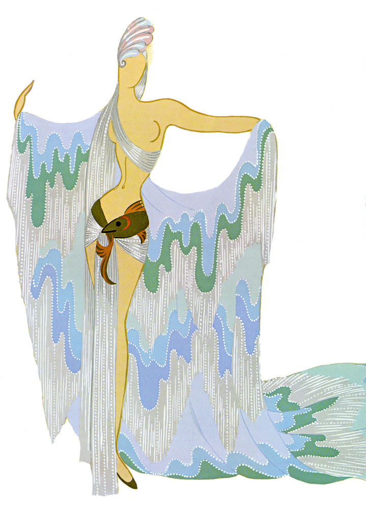 Ti offriamo una riproduzione artigianale su tela dell'opera famosa 'Acqua al Bal Tabarin' di Erte, dal Museo delle Riproduzioni.