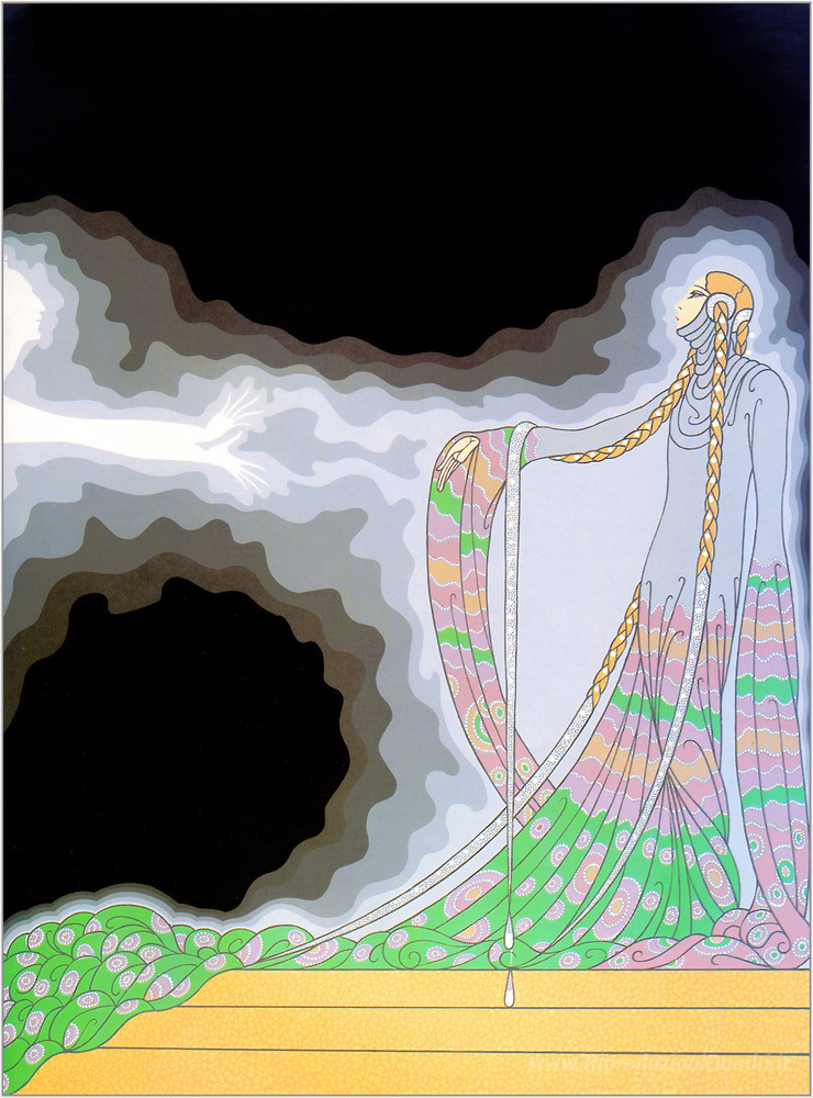 Scoprite l’incanto di Al Teatro, Melisande, un capolavoro dell'artista Erté, che fonde eleganza e sofisticatezza in un'unica opera. Erté, noto per il suo stile Art Déco, ha saputo catturare l'essenza del teatro e del dramma attraverso una palette di colori vibranti e dettagli sfarzosi, tipici della sua produzione. Ogni pennellata vive di movimento, portando lo spettatore in un viaggio visivo che celebra la bellezza e l'espressione dell'arte.
