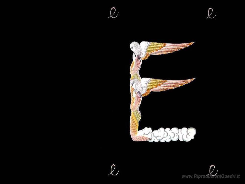 Ti offriamo una riproduzione artigianale su tela dell'opera famosa 'Alfabeto E' di Erte, dal Museo delle Riproduzioni.