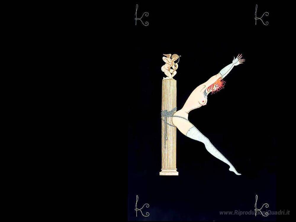 Ti offriamo una riproduzione artigianale su tela dell'opera famosa 'Alfabeto K' di Erte, dal Museo delle Riproduzioni.