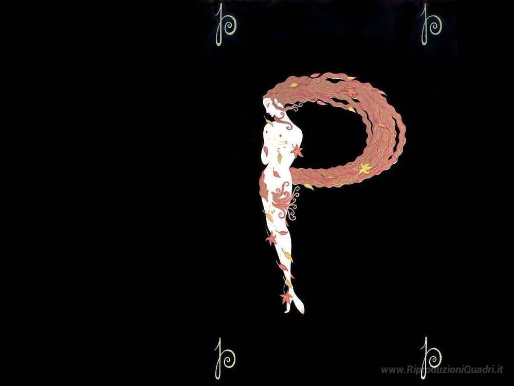 Ti offriamo una riproduzione artigianale su tela dell'opera famosa 'Alfabeto P' di Erte, dal Museo delle Riproduzioni.